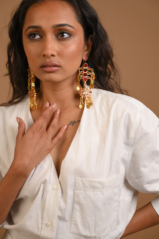Nadiya Red Gold Plated Earrings