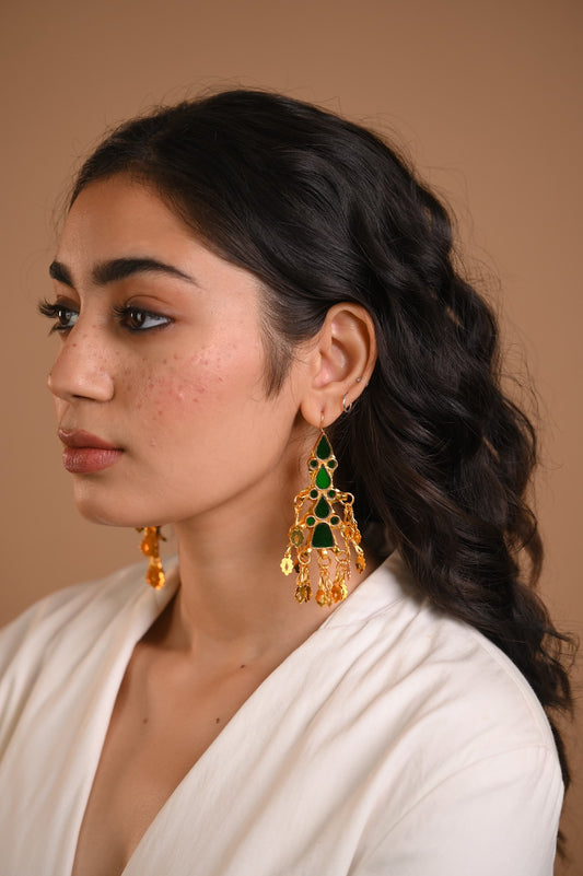 Nura Green Gold Plated Earrings